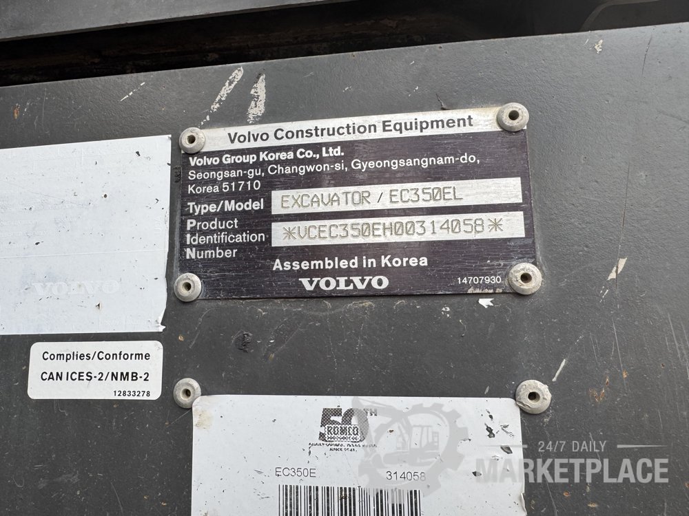 Volvo EC350EL 700mm Pads, CV, QH, Piped, WLI, Reverse Camera, Side Camera, A/C - VCEC350EH00314058