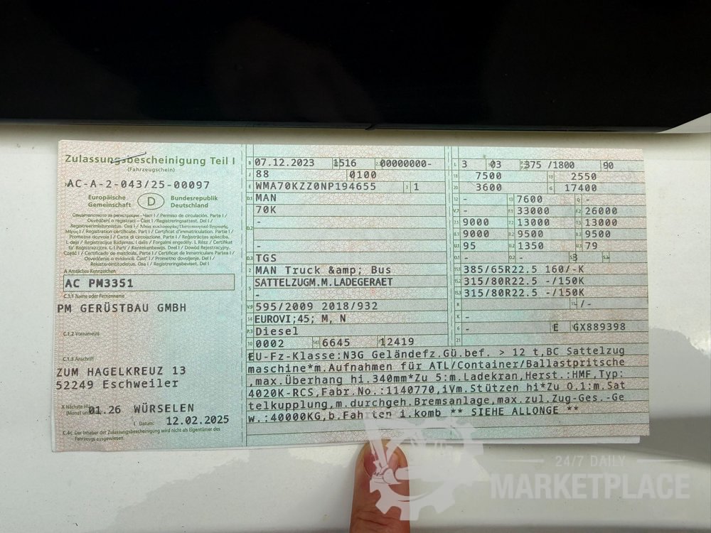 2023 MAN TGS 33.510 6x6 BL SA, HMF Group A/S 4020 K6 Crane (11,513 Kms) - AC PM 3351 - 100359883