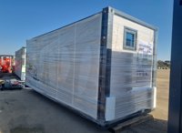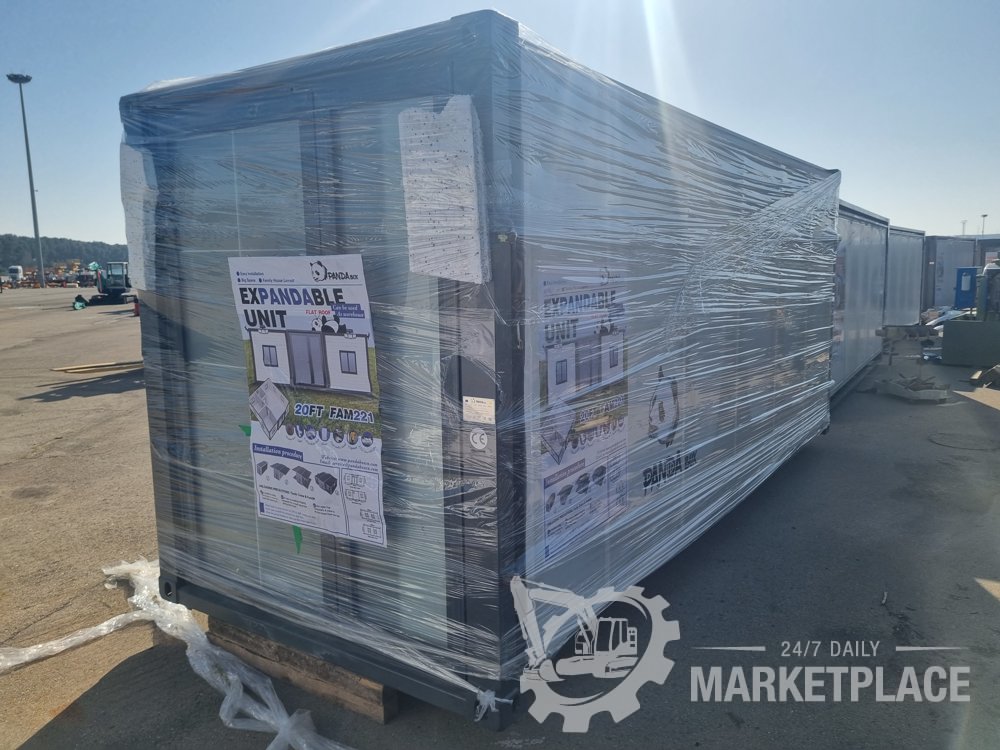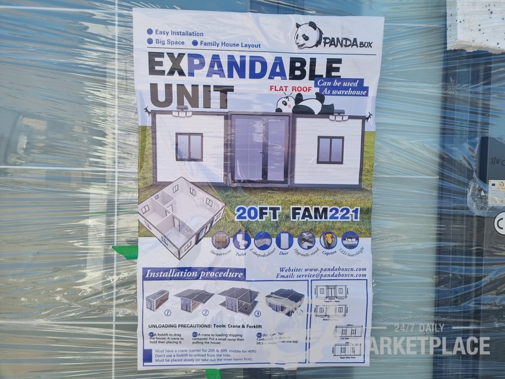 Unused 2025 Pandabox FAT221 Folding Flat Roof Portable Unit, One Bathroom, Three Areas, Two Sets Of Cabinets, One With Sink, Windows Screens, 5 Solar Sensor Lights For Outside - PBFAT202501