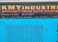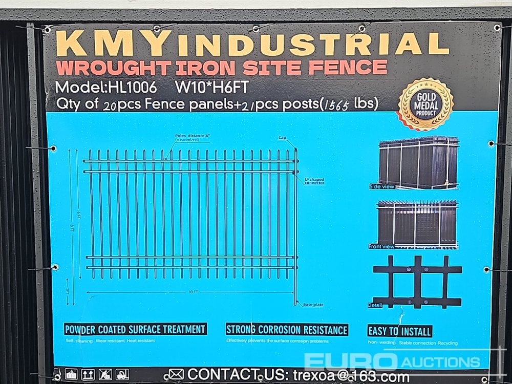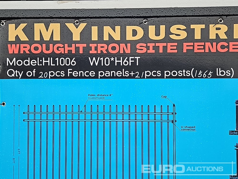 Unused 2025 KMY Industrial 10' x 6' Galavanized Iron Site Fence