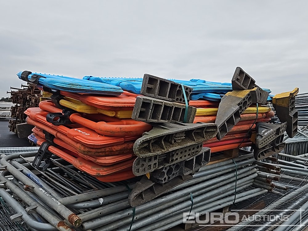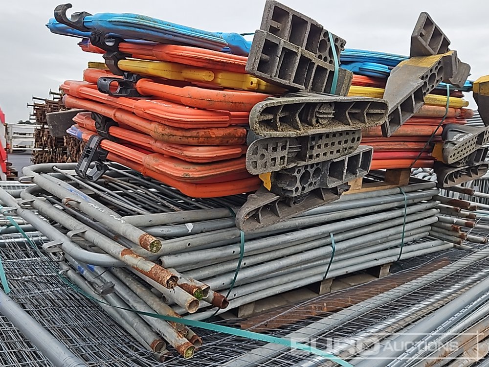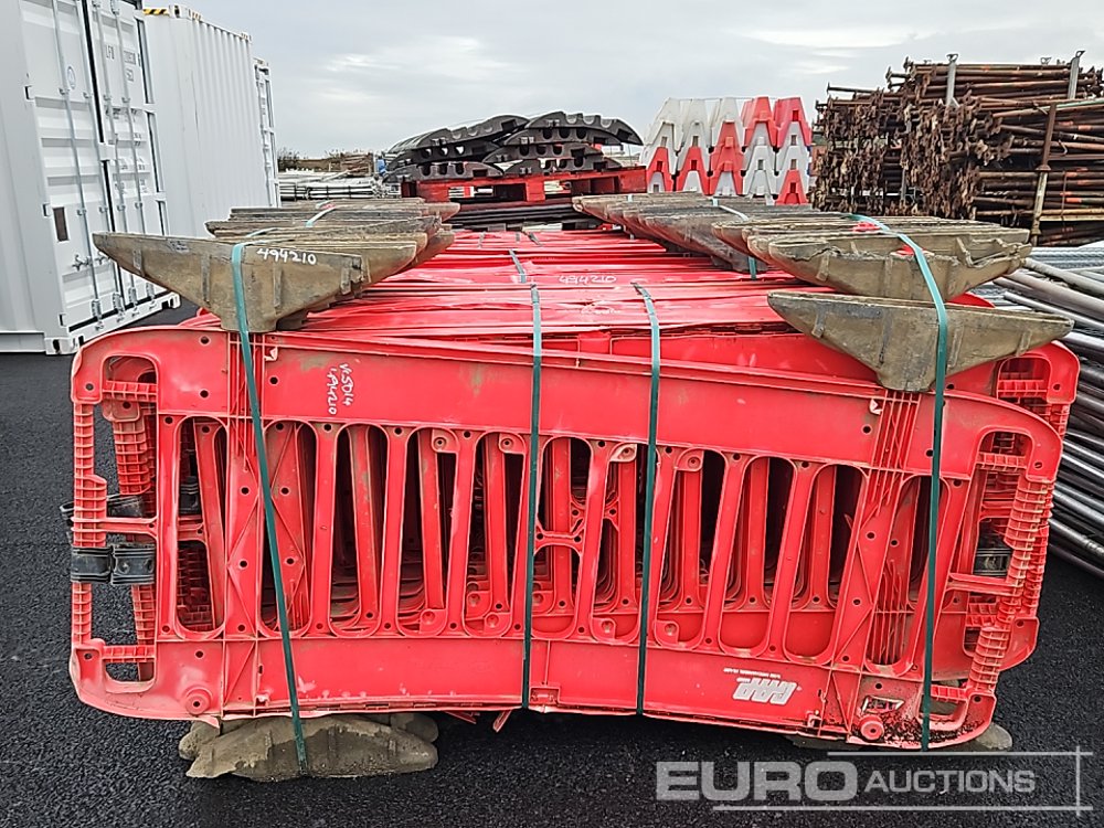 Bundle of Plastic Safety Barriers (5 of), Bundle of Metal Safety Barriers (5 of), Bundle of Heras Fencing (2 of), Cable Mats (7 of), Tracks Mats (3 of), Staging Board - 140494210