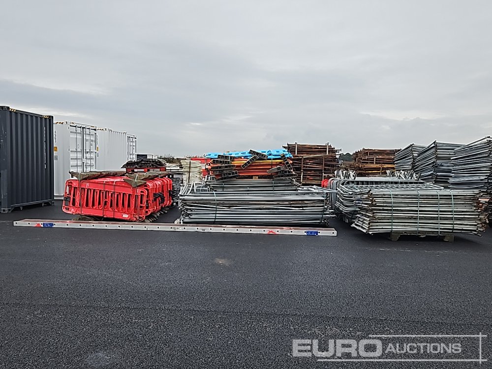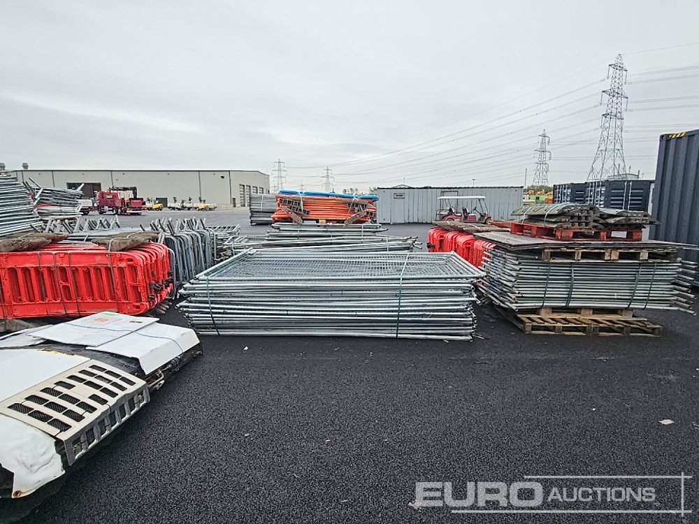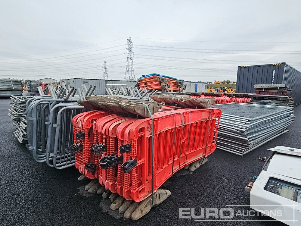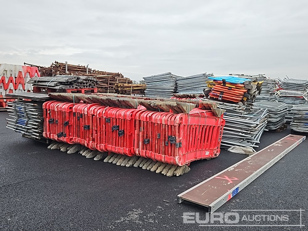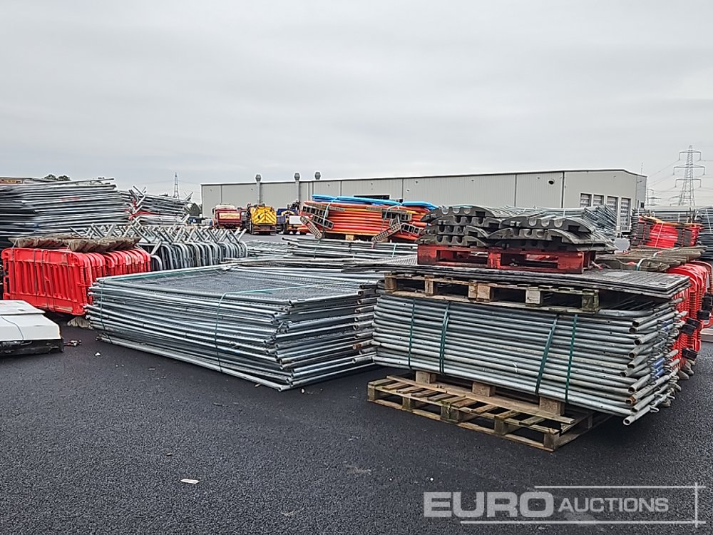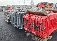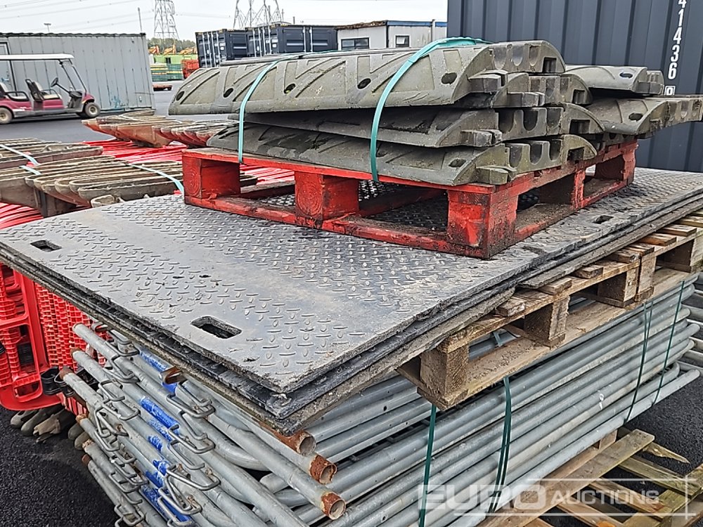 Bundle of Plastic Safety Barriers (5 of), Bundle of Metal Safety Barriers (5 of), Bundle of Heras Fencing (2 of), Cable Mats (7 of), Tracks Mats (3 of), Staging Board