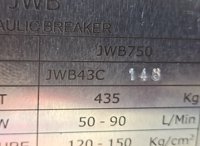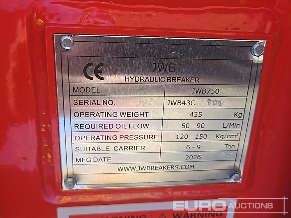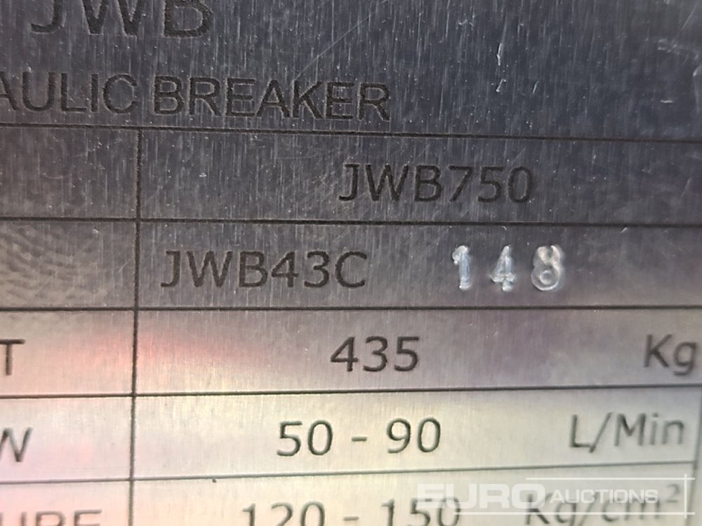 Unused 2026 JWB JWB750 Hydraulic Breaker 50mm Pin to suit 6-8 Ton Excavator - JWB43C148