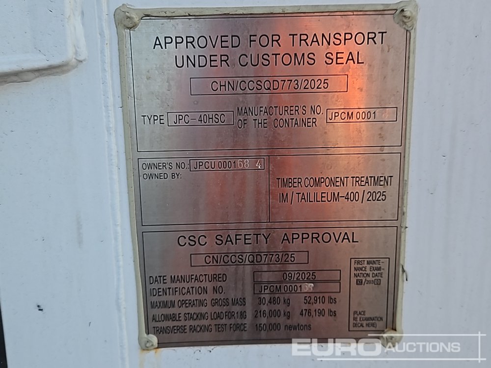 2026 40' x 8' Container, 1 Side Door, 1 End Door, 2 Windows (Cannot Be Reconsigned) - JPCU0001684