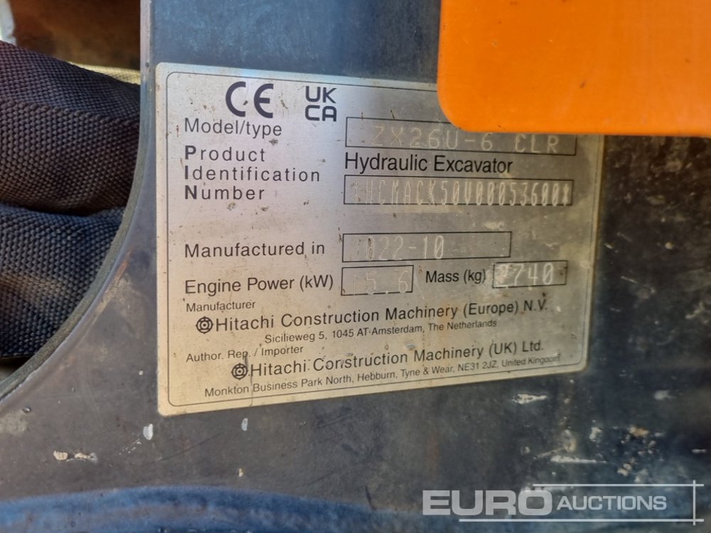2022 Hitachi ZX26U-6 CLR