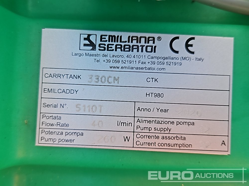Unused 2026 Emiliana Serbatoi CTG330/CM 330 Litre Static Plastic Fuel Bowser, Electric Pump (Declaration of Conformity Available) - 5110T