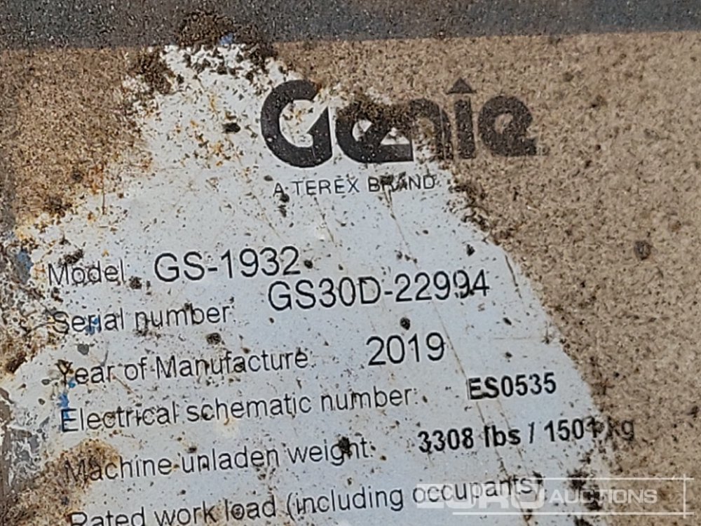 2019 Genie GS1932 Electric Scissor Lift, 7.85m Working Height, 227kg Platform Capacity, Extending Deck, Non Marking Tyres (Meter Reading: 191 Hours) - GS30D22994