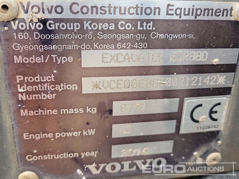 2016 Volvo ECR88D
