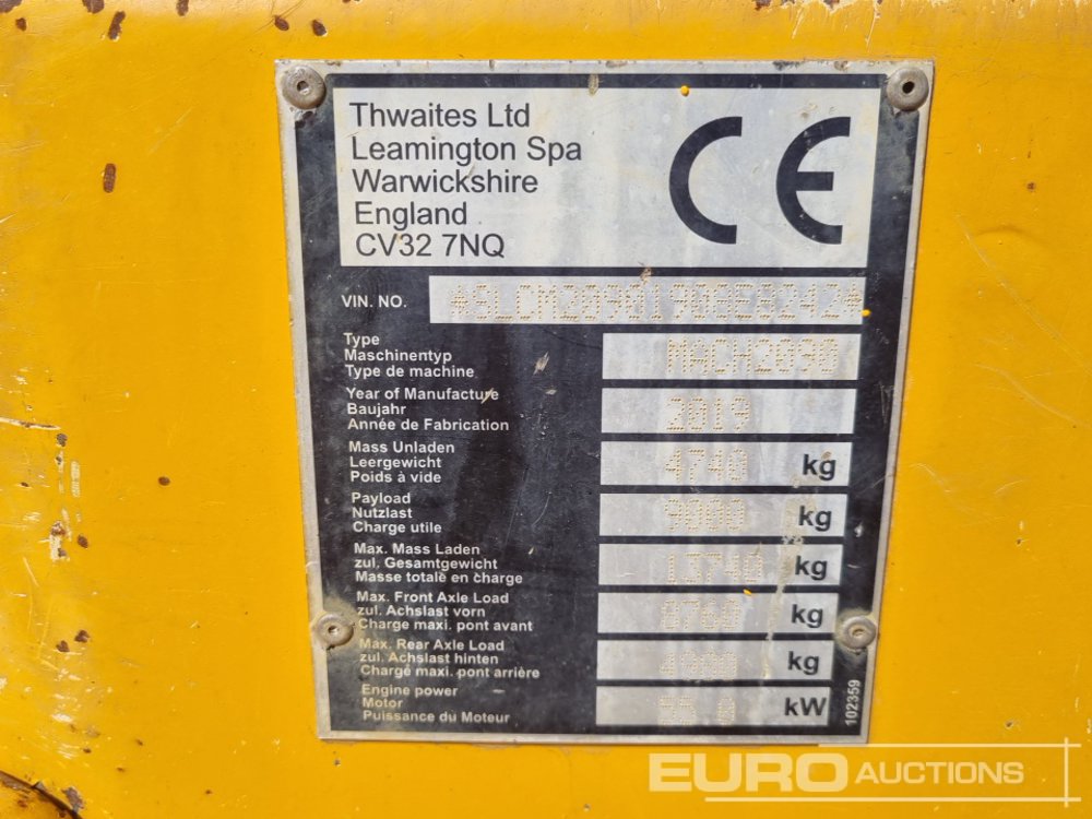 2019 Thwaites 9 Ton Dumper, Forward Facing Camera, Roll Bar - SLCM20901908E8242