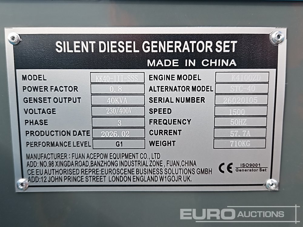 Unused 2026 Kawakenki KK-30-III-SSS 30kVA Generator, 4 Cylinder Engine - 140534502
