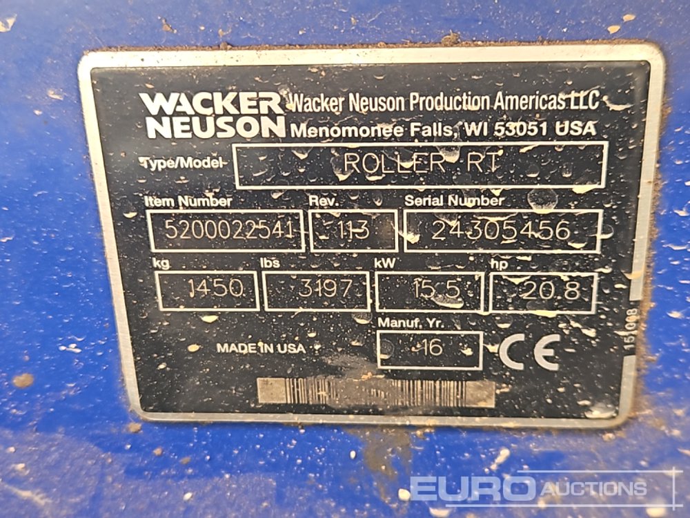 2016 Wacker Neuson RTSC3 Radio Controlled Double Drum Vibrating Padfoot Trench Roller - 24305456