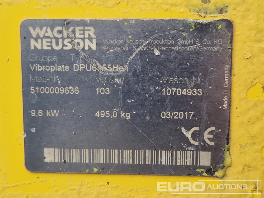 2017 Wacker Neuson DPU6555 HE Diesel Vibrating Compaction Plate - 10704933