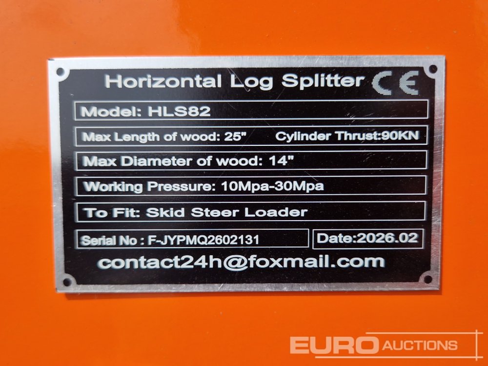 Unused GIYI GY-HLS82 Log Splitter to Suit Skidsteer - F-JYPMQ2602131