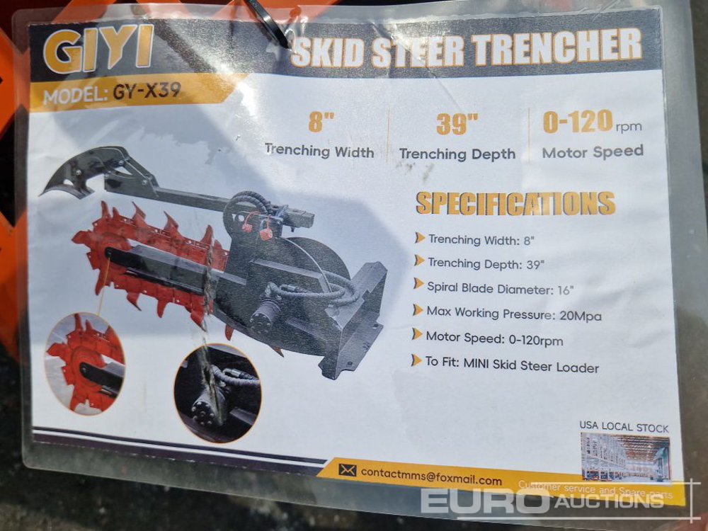 GIYI GY-D39 Trencher to Suit Mini Skidsteer - F-XKGJ2512136