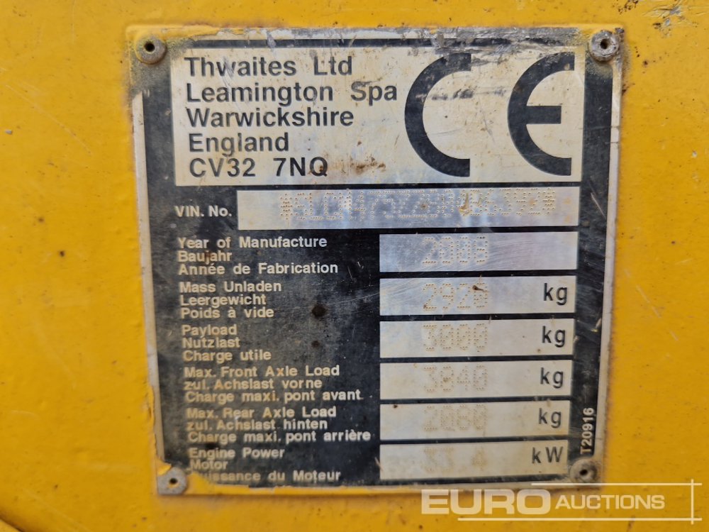 Thwaites 3 Ton High-Tip Swivel Skip Dumper, Roll Bar (Meter Reading: 912 Hours) - SLCM475ZZ80486392
