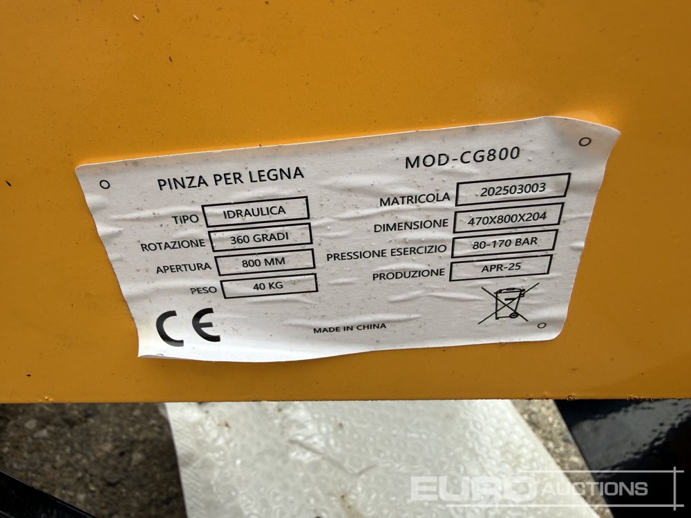 Unused JPC CG800 Hydraulic Grapple to suit Mini Excavator / Pinza Hidráulica para Mini Excavadora - 202503003