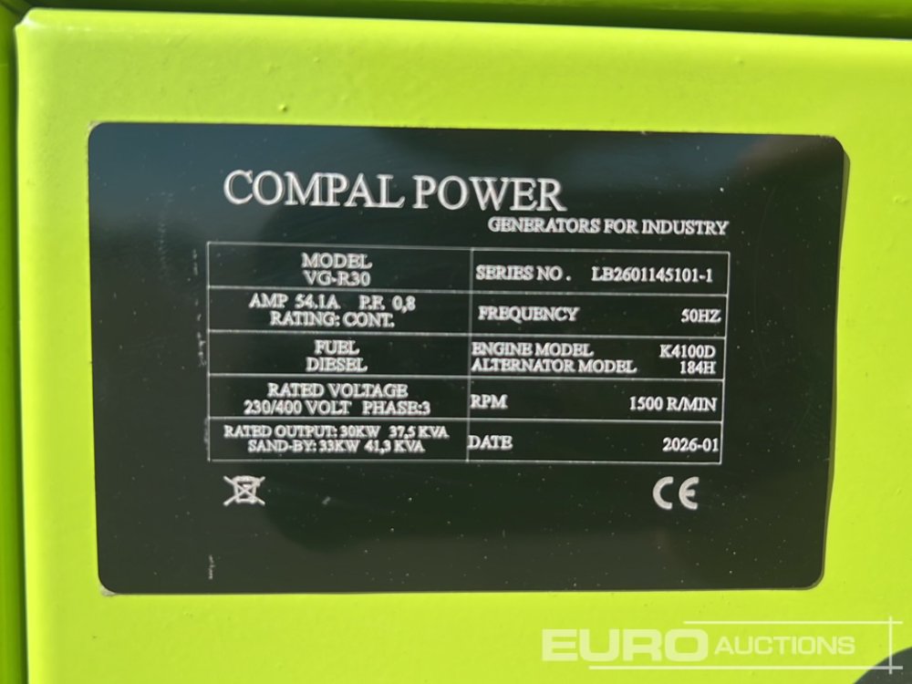 Unused 2026 Compal Power VG-R30 30kWA Generators - LB2601145101-1