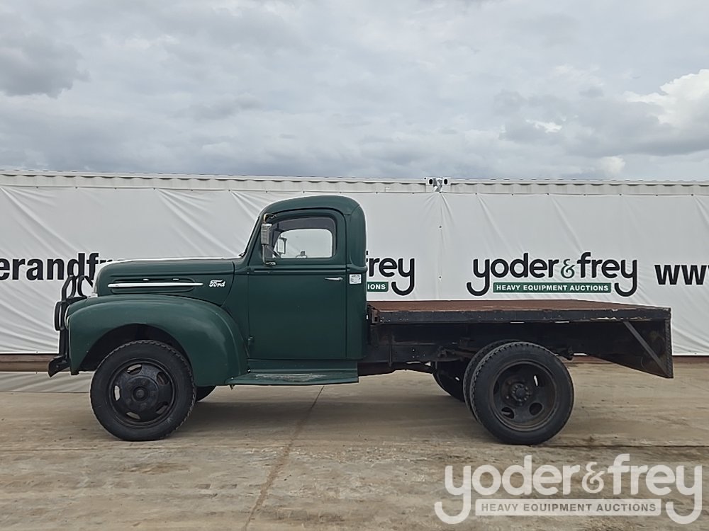 1947 Ford 1 Ton Flatbed, Shows 31k Miles, Replacement 239ci FlatHead V8, Four-Speed Manual Transmission, HD Axles w/ Dually Rear, 20" Steel Wheels, Diamond-Plate Flatbed, Brush Gaurd, Running Boards, Receiver Hitch, 12V Electrical System, Run and Drives