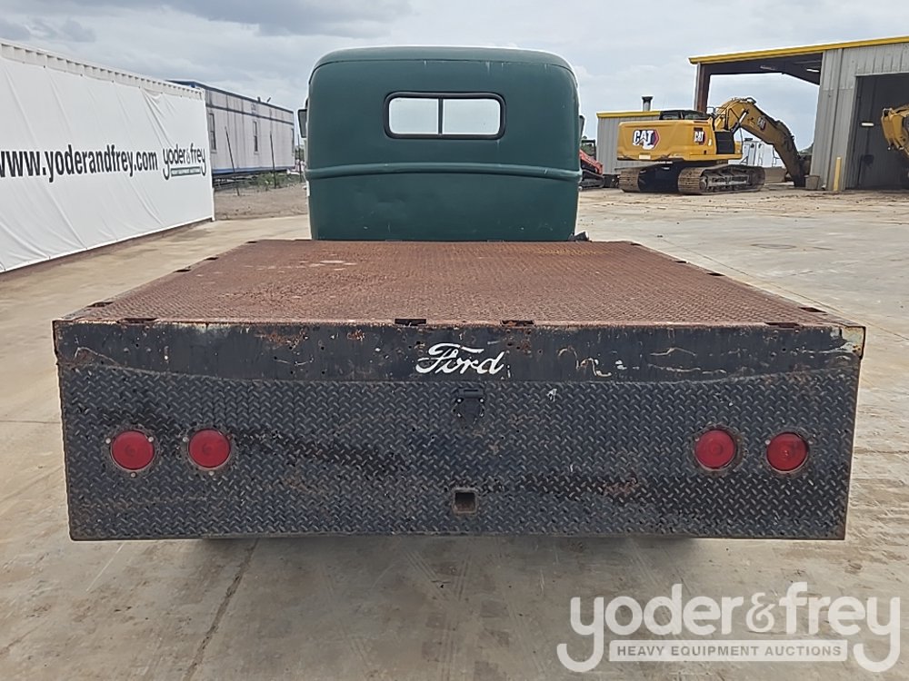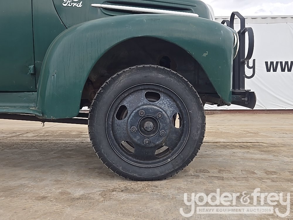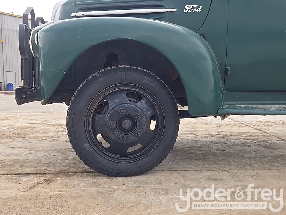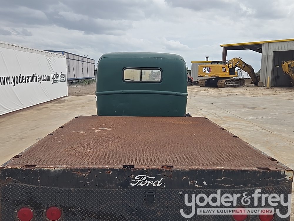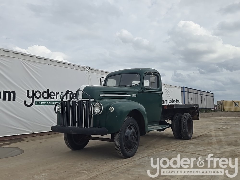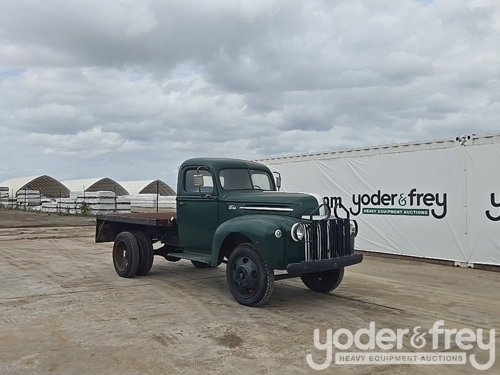 1947 Ford 1 Ton Flatbed, Shows 31k Miles, Replacement 239ci FlatHead V8, Four-Speed Manual Transmission, HD Axles w/ Dually Rear, 20" Steel Wheels, Diamond-Plate Flatbed, Brush Gaurd, Running Boards, Receiver Hitch, 12V Electrical System, Run and Drives (Meter Reading: 31000 Miles) - 799Y1953807