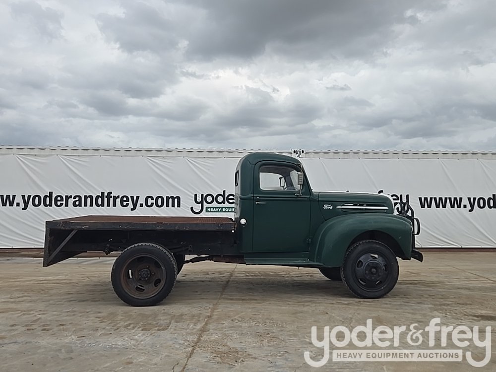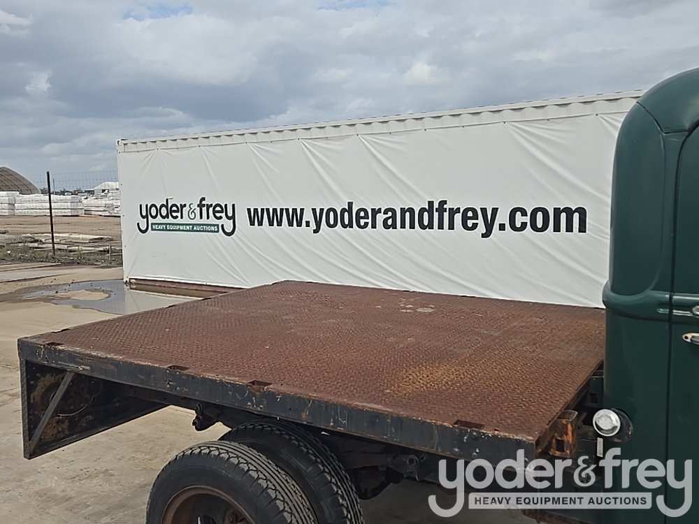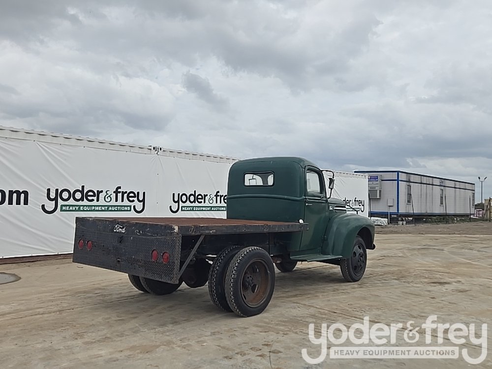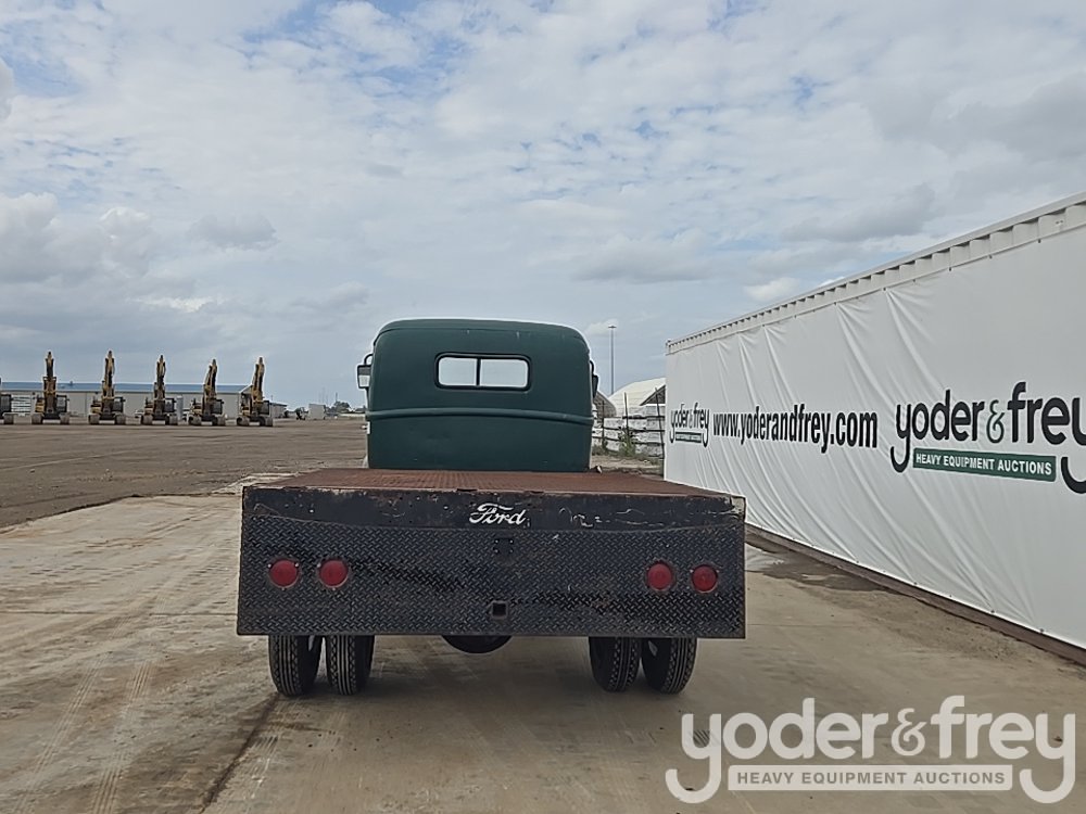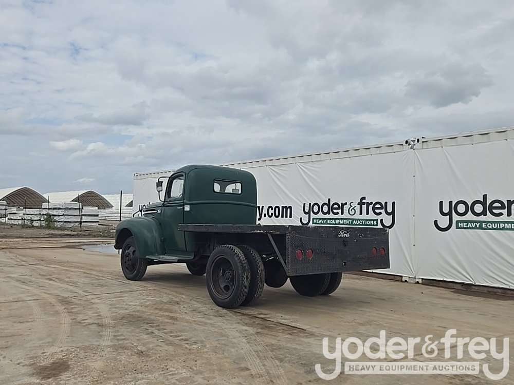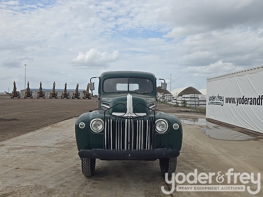 1947 Ford 1 Ton Flatbed, Shows 31k Miles, Replacement 239ci FlatHead V8, Four-Speed Manual Transmission, HD Axles w/ Dually Rear, 20" Steel Wheels, Diamond-Plate Flatbed, Brush Gaurd, Running Boards, Receiver Hitch, 12V Electrical System, Run and Drives (Meter Reading: 31000 Miles) - 799Y1953807