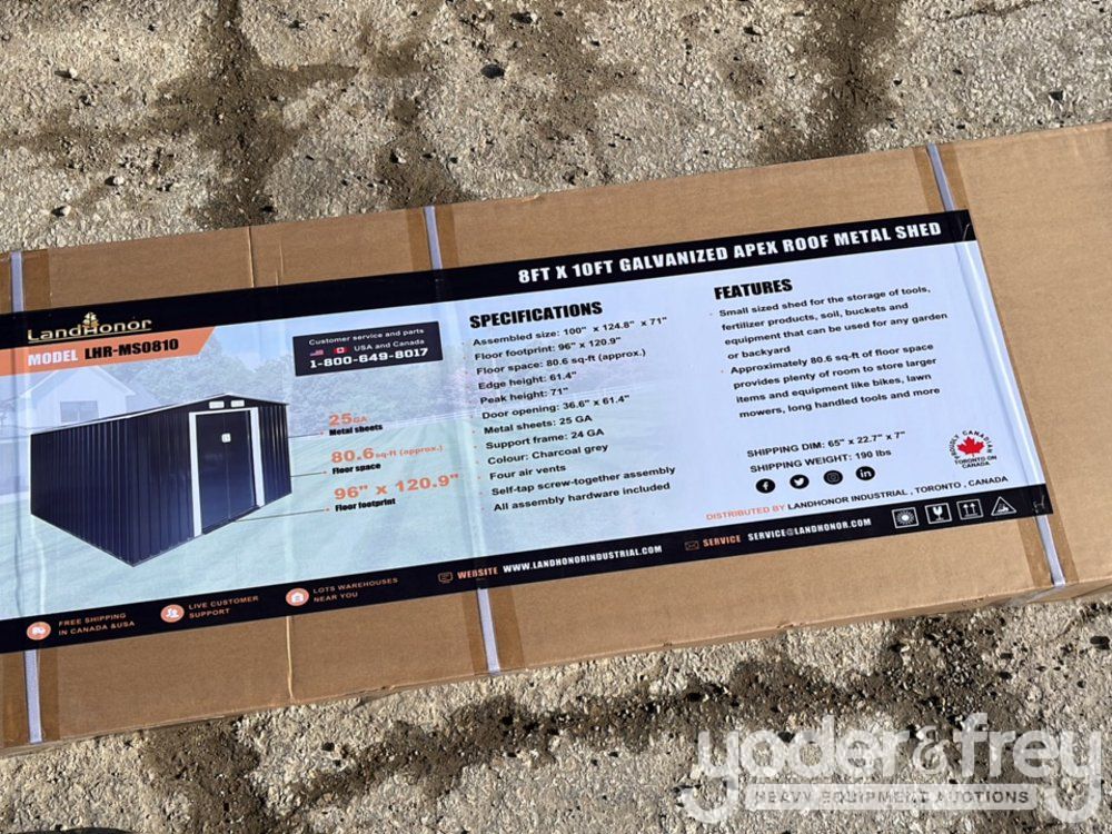 Landhonor LHR-MS0810 8' x 10' Galvanized Apex Roof Metal Shed - 540022035