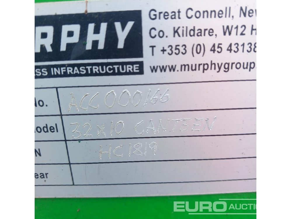 32x10 Steel Cabin, Canteen, (Will be Sold Offsite,furniture not included, Location: Murphy international, Newbridge, Co.Kildare. Contact: Cathal Doherty 0862176148, Seller Will Load) - ACC000166