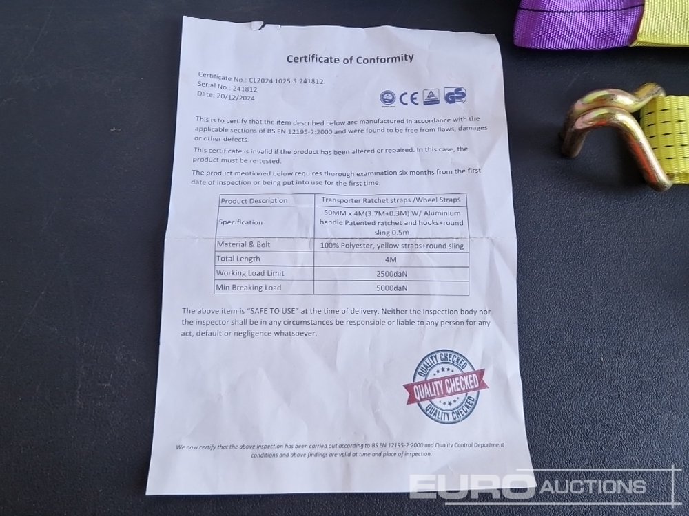 Unused 2026 Boss 4M x 50mm 5 Ton Ratchet Straps with Sling (4 of) - 03219