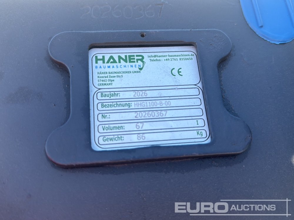 Unused Häner HHG1100-B-00 Hydraulic Tilt Ditching Bucket to suit 1.2-1.9 Ton Excavator, Width: 1000 mm, Volume (SAE): 76 l, Weight: 86 kg - 20260367