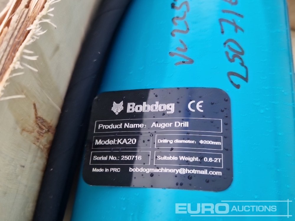 Unused 2025 Bobdog KA20 Auger Drill To Suit 0.6-2 Ton Excavator - 250716