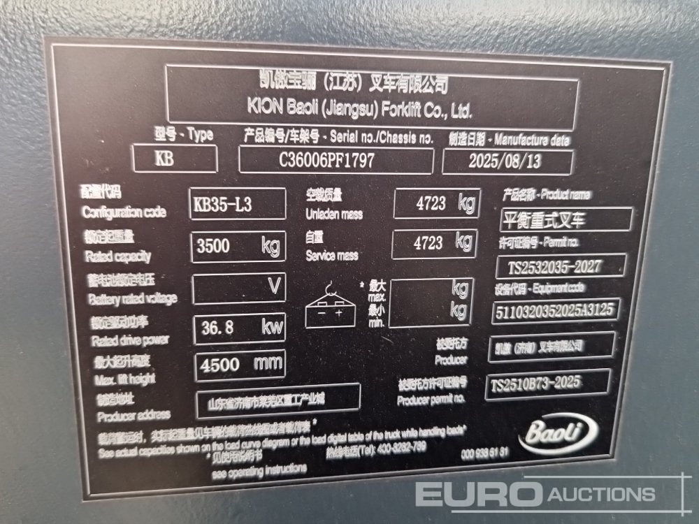 Unused 2025 Baoli KB35 Diesel Forklift, 3 Stage Mast, Sideshift, Forks - C36006PF1797
