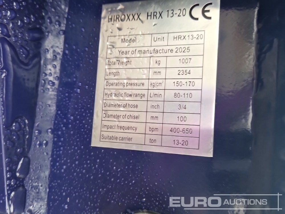 Unused 2025 Hirox HRX13-20 Hydraulic Breaker 65mm Pin to suit 13 Ton Excavator - HDX30636
