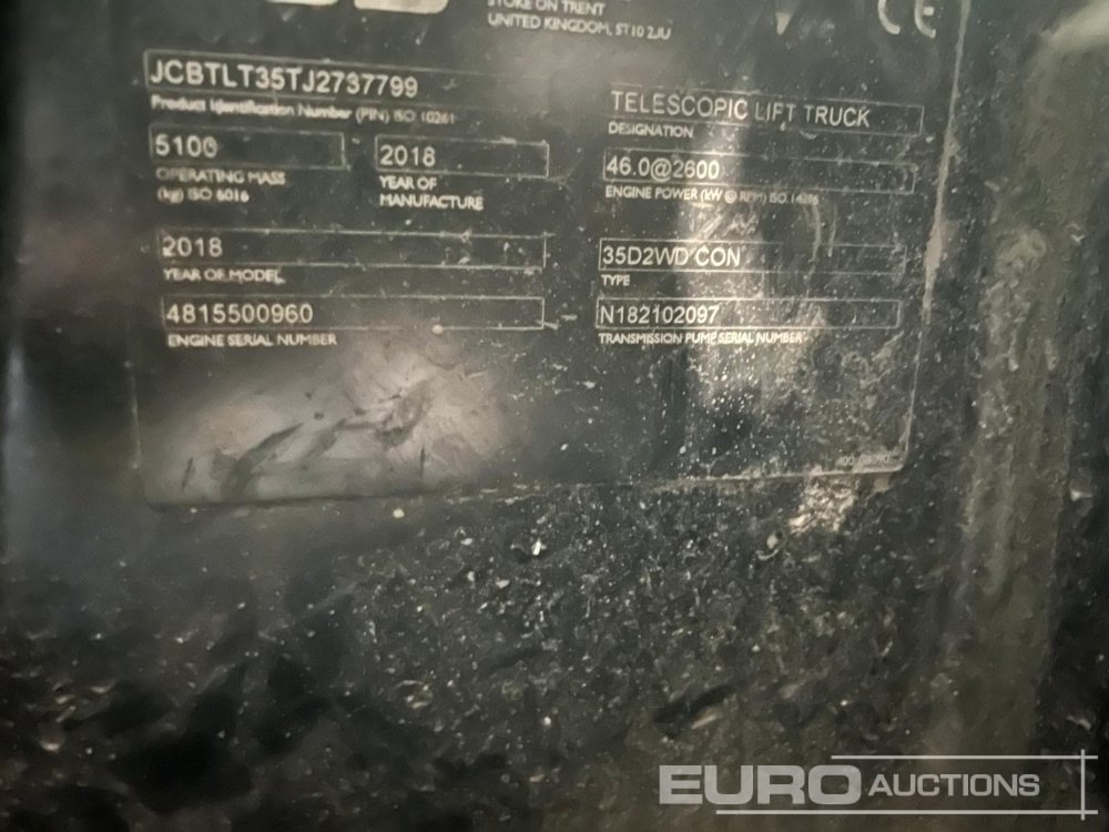 2018 JCB TLT35 Teletruk WLI, Forks - JCBTLT35TJ2737799