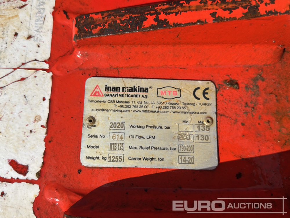 2020 Inan Makina Hydraulic Breaker 65mm Pin to suit 13 Ton Excavator - 130037089