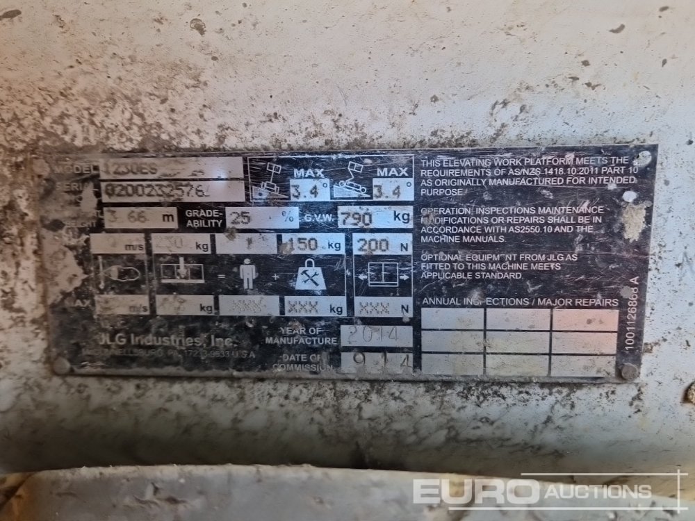 2014 JLG 1230ES Electric Vertical Mast Lift, 5.66m Working Height, 227 Platform Capacity, Non Marking Tyres (Top Controller Missing) (Meter Reading: 406 Hours) - 0200232576