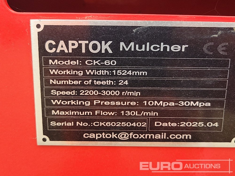Unused 2025 Captok CK-60 Hydraulic Mulcher to suit Skidsteer Loader - CK60250402