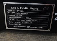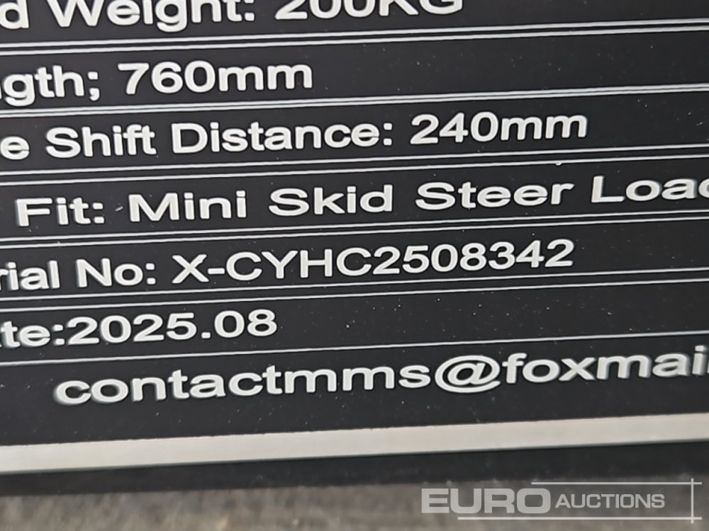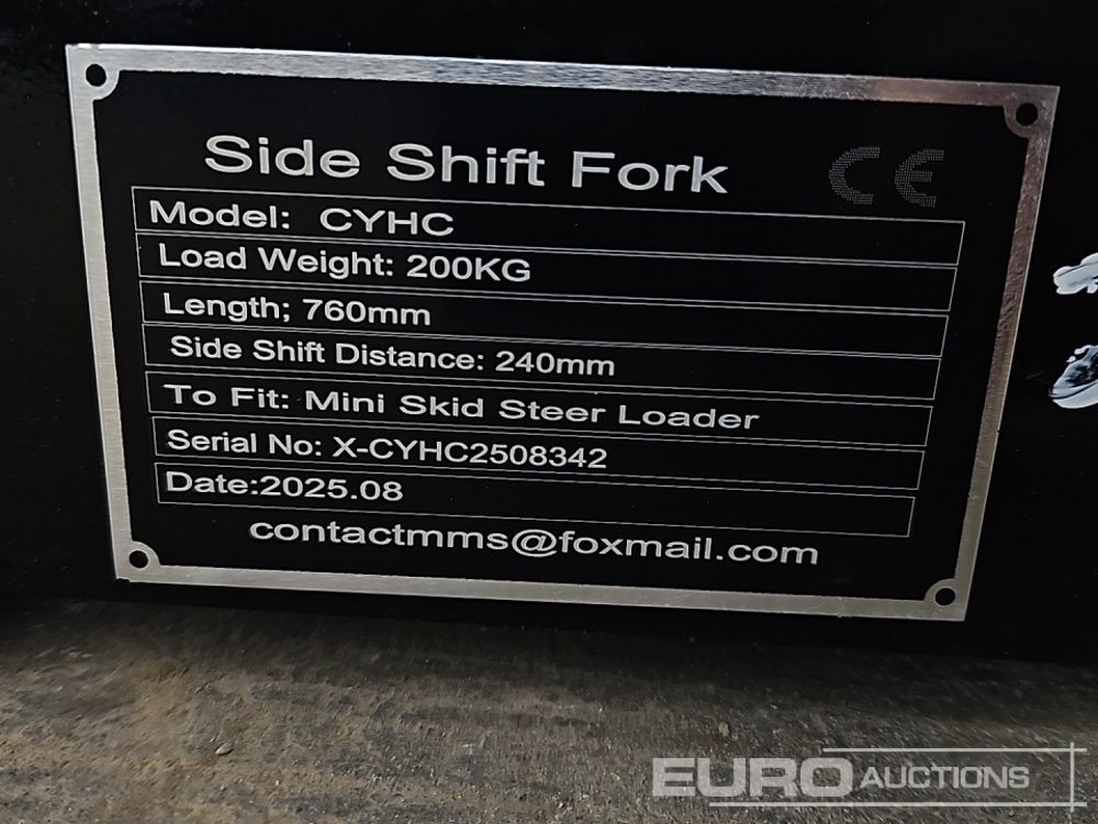 Unused 2025 Captok CYHC Hydraulic Side Shift Fork Frame & Forks to suit Mini Skidsteer Loader - 140487274