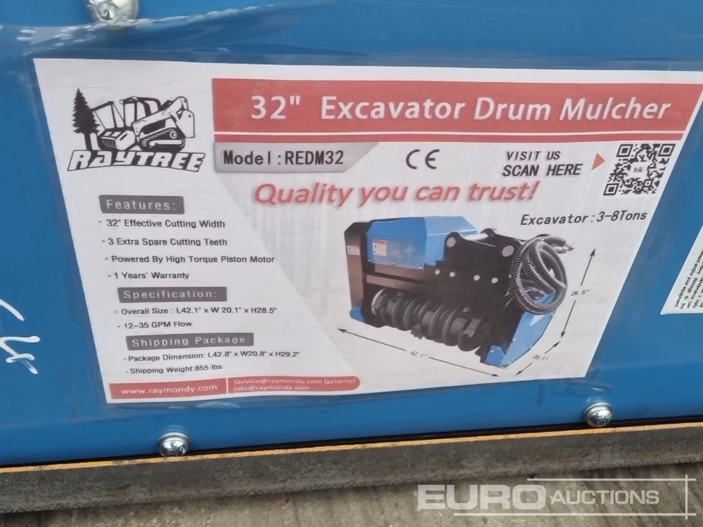 Unused 2025 Raytree REDM32 Hydraulic Mulcher 45mm Pin to suit 4-6 Ton Excavator - EBD20250903254