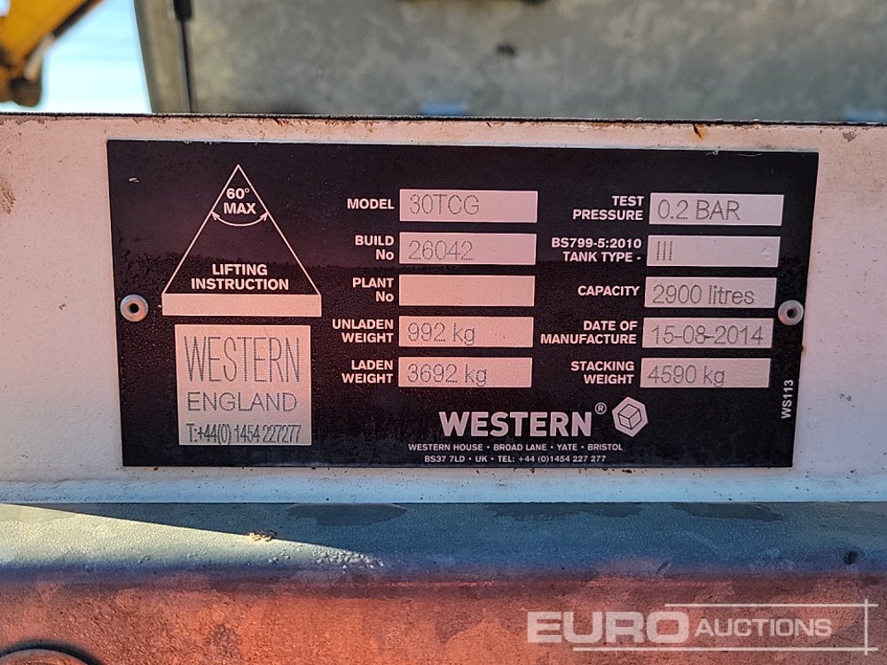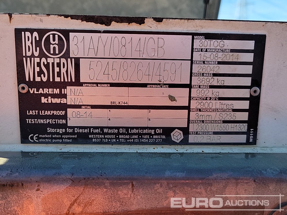 2014 Western 30TCG 2900 Litre Static Bunded Fuel Bowser - 26042