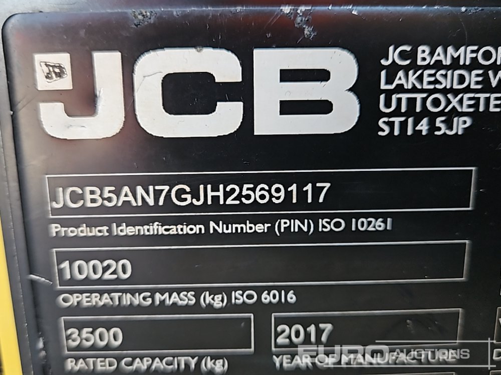 2017 JCB 535-125 Hi Viz Turbo Powershift Telehandler, Fork Positioner, Sway, 360 Camera, WLI, A/C, Forks - FE67 CVS - JCB5AN7GJH2569117