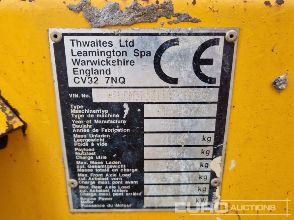 2011 Thwaites 3 Ton Swivel Skip Dumper, Roll Bar - SLCM573Z1107C0801