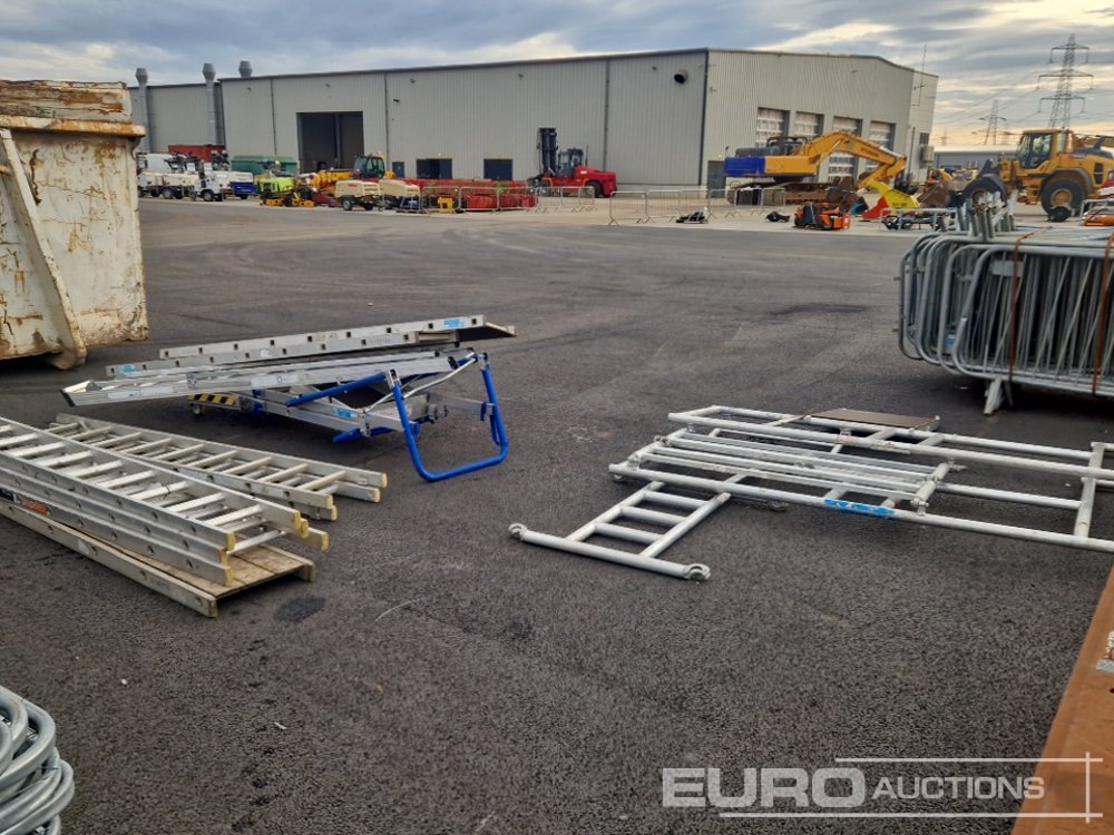 Staging Boards (2 of), Aluminium Ladders (3 of), Aluminium Scaffolding