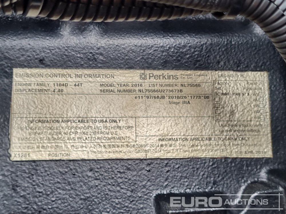 2017 FG Wilson XD60P4 60kVA Generator, Perkins Engine - FGWPPEU2EXD400269