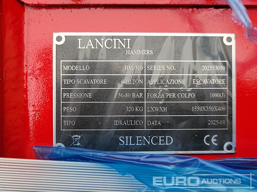 Unused 2025 Lancini HM-500 Hydraulic Breaker 35mm Pin to suit Mini Excavator - 140495080