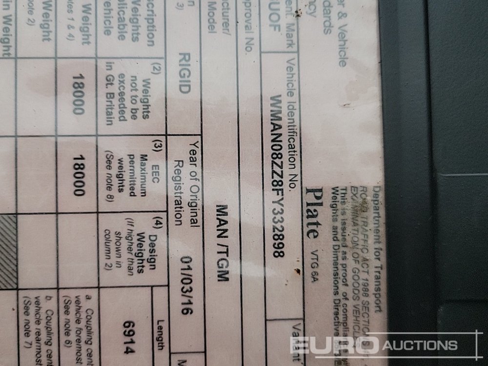 2016 MAN TGM18.250 4x2 Hot Box Lorry, Reverse Camera, Manual Gearbox (Plating Certificate Available) - NX16 UOF - WMAN08ZZ8FY332898