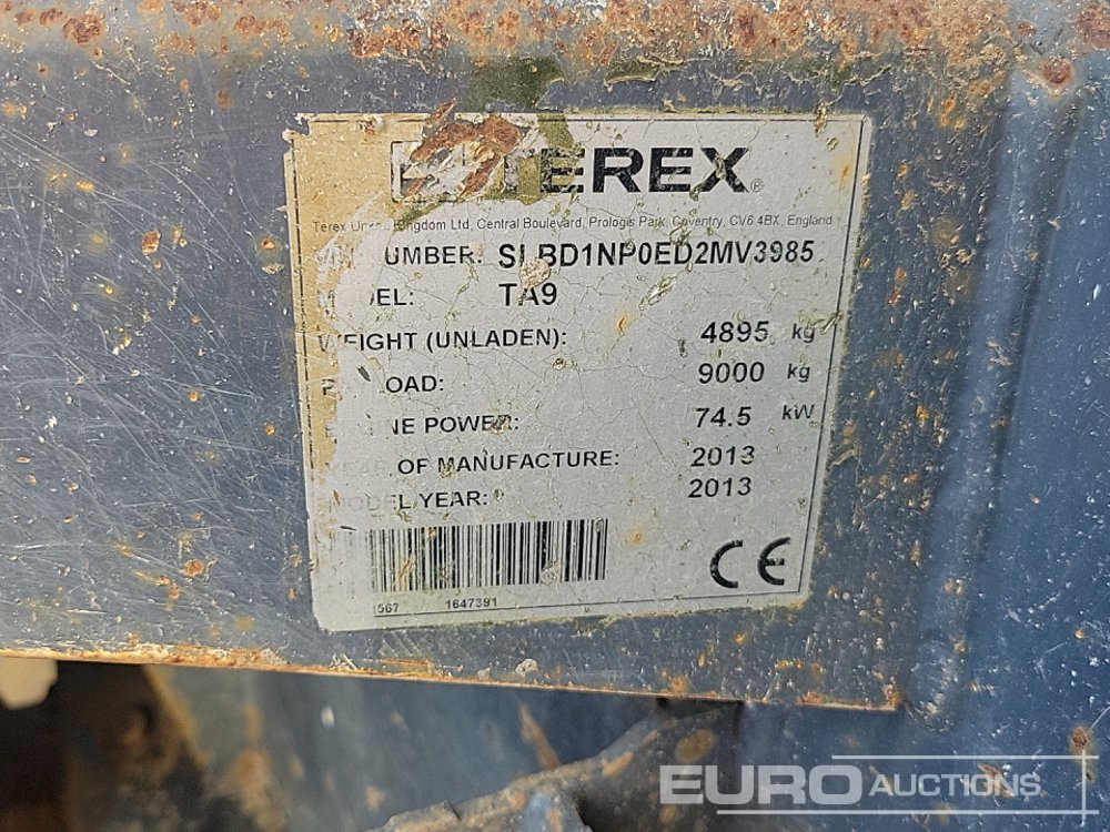 2013 Terex TA9 9 Ton Dumper, Roll Bar - SLBD1NP0ED2MV3985