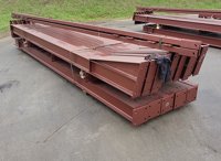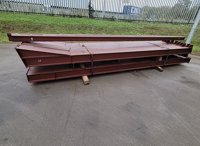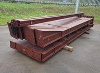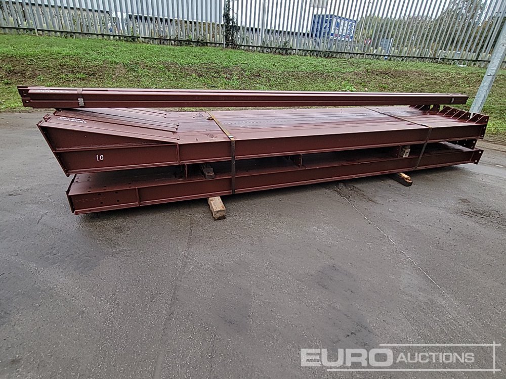 Unused Steel Frame Building 60’x30’x15’. 4no 15’ Bays. 12.5° Roof Pitch. Purlin Cleats Spaced To Accept Fibre Cement Or Steel Roof Sheets. 10no Columns 178x102x19kg 10no Rafters 178x102x19kg 2no Roof Brace Bars 60x60x4shs 2no Side Brace Bars 60x60x4shs