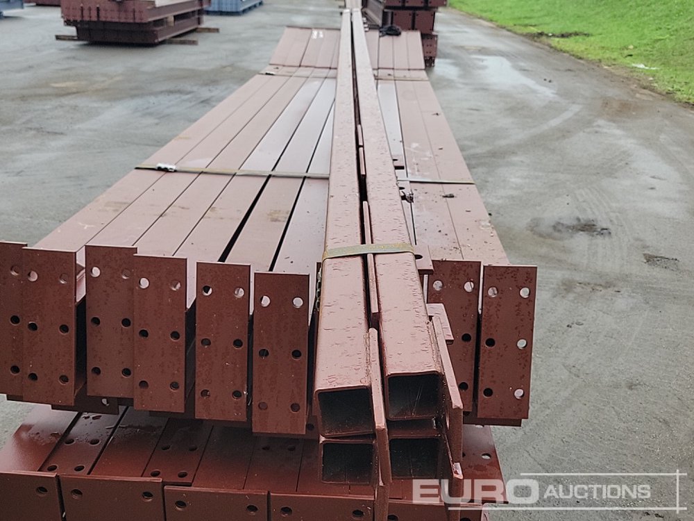 Unused Steel Frame Building 60’x30’x15’. 4no 15’ Bays. 12.5° Roof Pitch. Purlin Cleats Spaced To Accept Fibre Cement Or Steel Roof Sheets. 10no Columns 178x102x19kg 10no Rafters 178x102x19kg 2no Roof Brace Bars 60x60x4shs 2no Side Brace Bars 60x60x4shs - 140495423