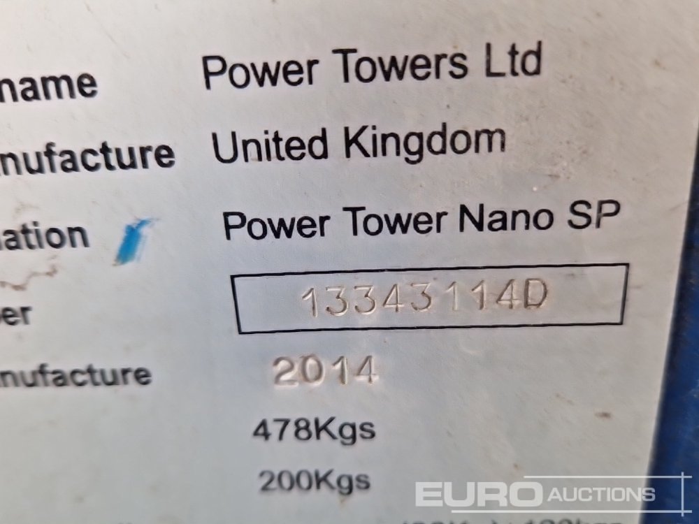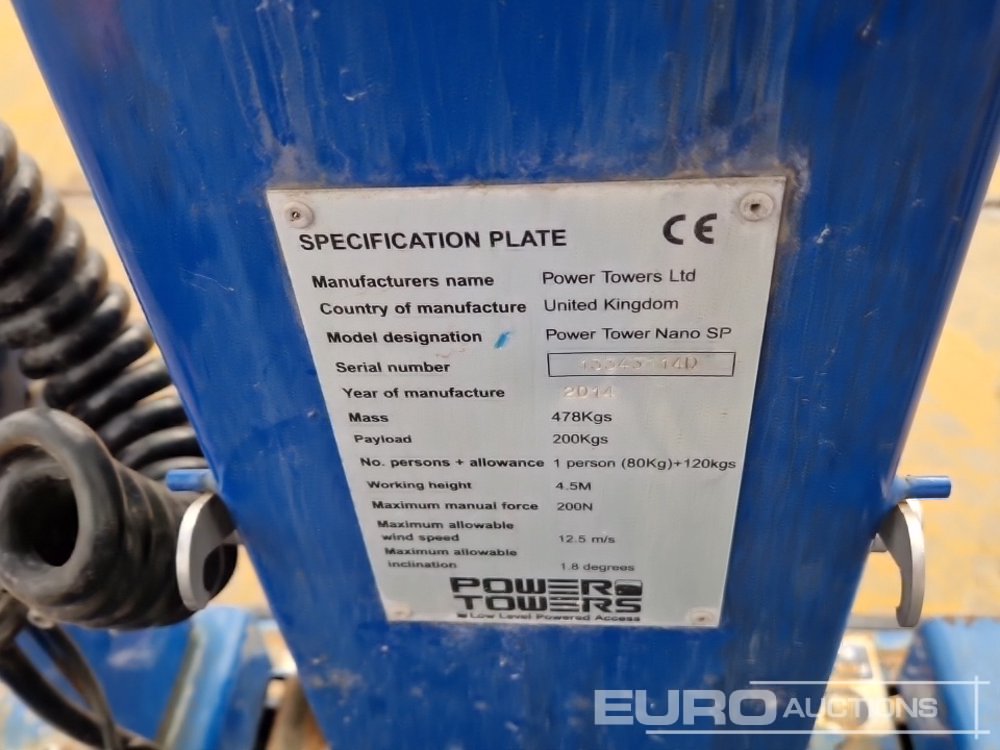 2014 Power Towers Nano SP Self Propelled Vertical Lift, 4.5m Working Height, 200kg Platform Capacity, Extending Deck - 13343114D