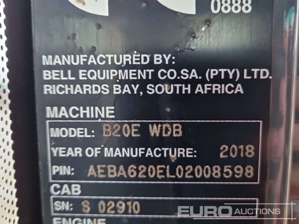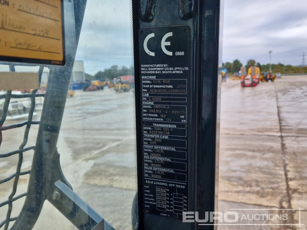 2018 Bell B20E 6x6 Articulated Dumptruck, Tail Gate, Reverse Camera, A/C - AEBA620EL02008598