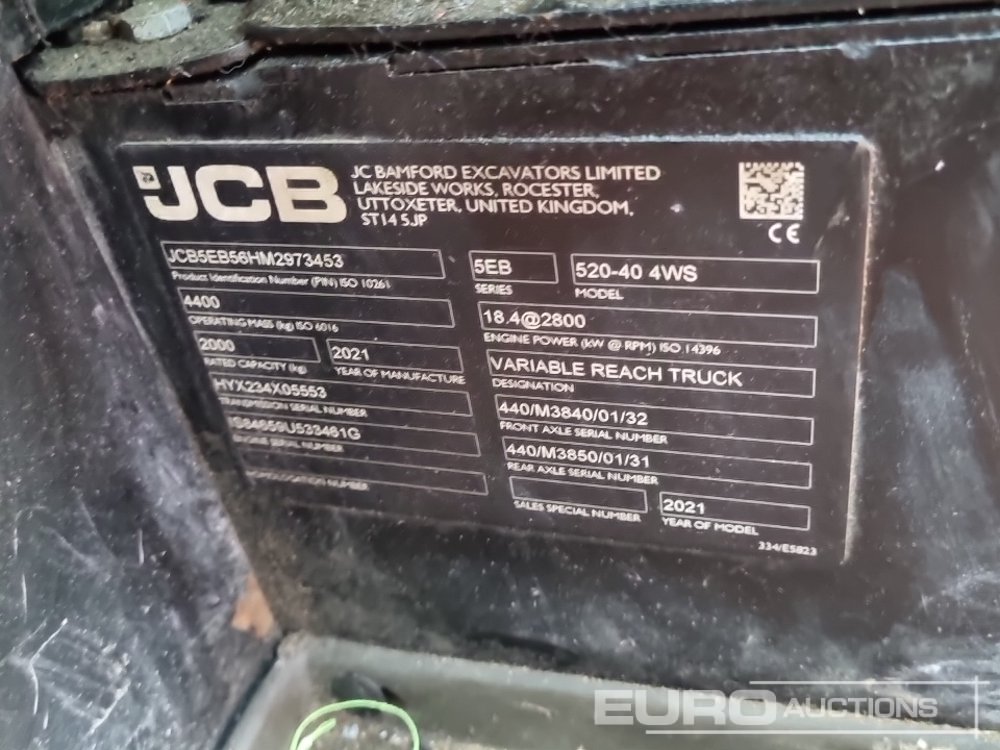 2021 JCB 520-40 Telehandler, QH, WLI, Forks (Meter Reading: 716 Hours) - FE21 JSX - JCB5EB56HM2973453